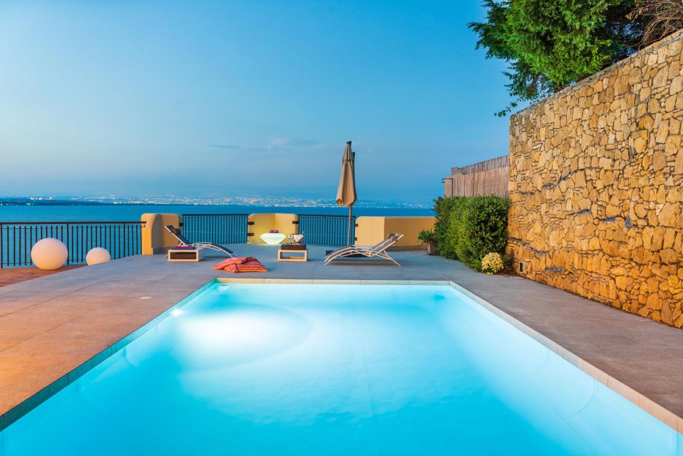 Villa Mari - Sea View Heated Pool - Baia del Riccio prevede un alloggio con piscina all’aperto, giardino e zona spiaggia privata ad Augusta e dispone di WiFi gratuito e vista sulla città . La villa dispone di parcheggio privato gratuito e si trova in una zona dove potrete praticare la pesca, lo snorkeling e il ciclismo.