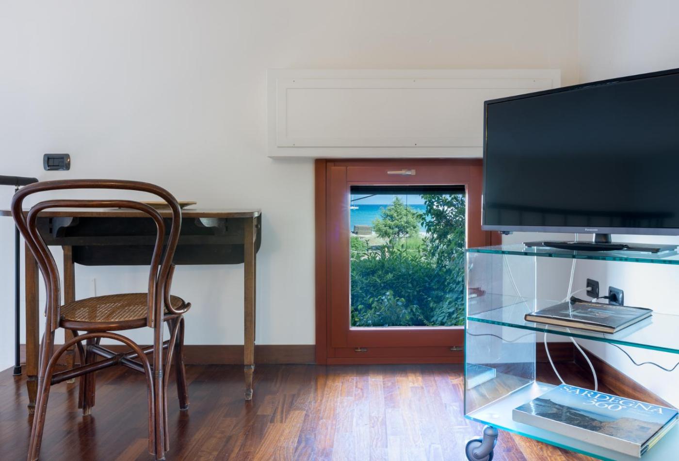 Appartamento con Vista Mare. Questo appartamento climatizzato con ingresso indipendente comprende 1 soggiorno, 1 camera da letto separata e 1 bagno con doccia e bidet. L’angolo cottura è provvisto di fornelli, frigorifero, lavastoviglie e utensili. L’unità dispone inoltre di pavimenti in parquet, area salotto con TV a schermo piatto,per la preparazione di tè e caffè, zona pranzo e vista sul mare. L’alloggio presenta 2 letti.