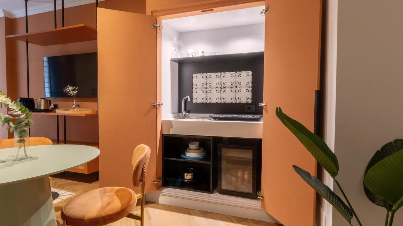 Appartamento Deluxe. Featuring a private entrance, this air-conditioned apartment is comprised of a kitchenette, 1 bedroom and 1 bathroom with a shower and a bidet. The well-equipped kitchenette features a stovetop, a refrigerator, kitchenware and a tea and coffee maker. The apartment offers a flat-screen TV with streaming services, a washing machine, soundproof walls, a minibar as well as ancourtyard view. The unit offers 1 bed. ;